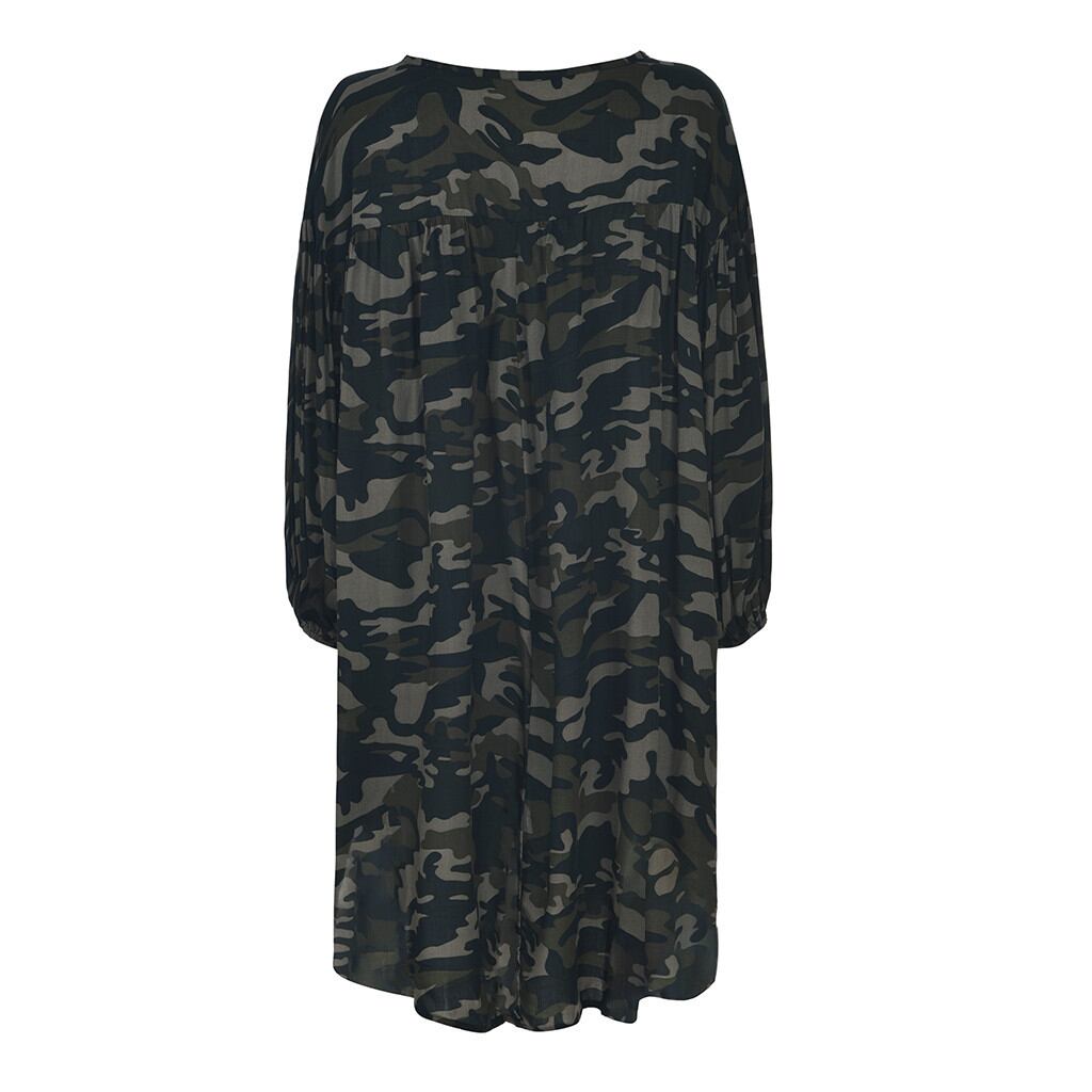ゆるっとしたシルエットのVネックカットソーで、トレンドの迷彩柄がポイント。長袖で1年中活躍します。